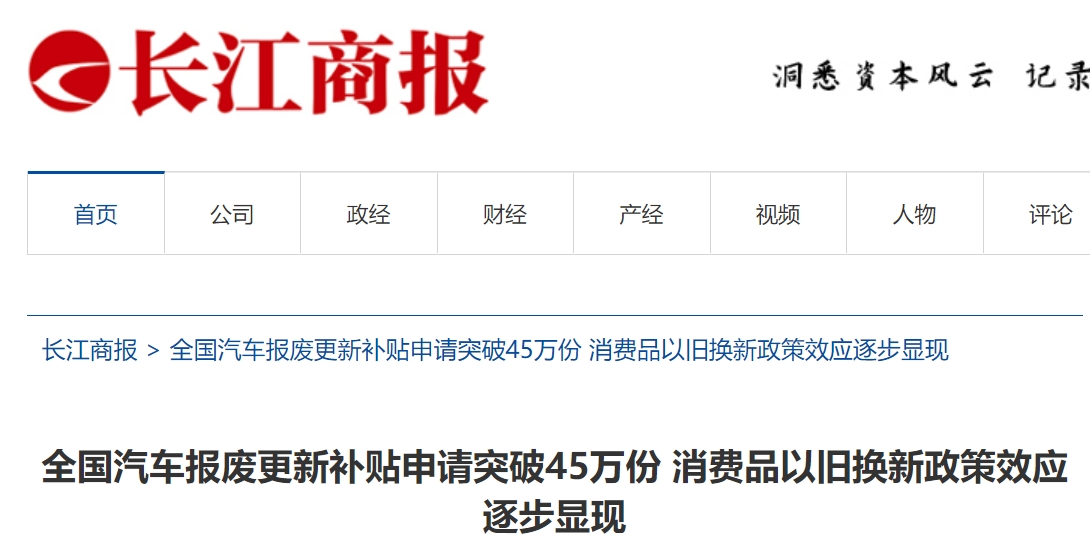 全國汽車(chē)報廢更新補貼申請突破45萬(wàn)份