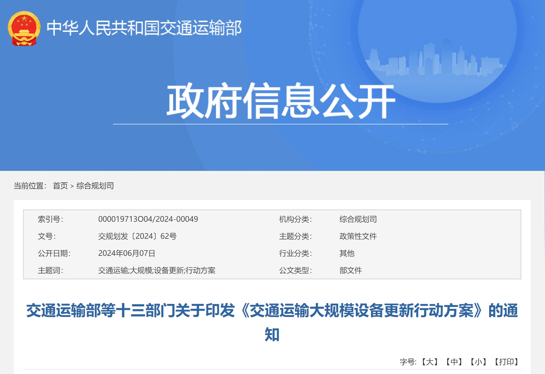 交通運輸部等十三部門(mén)關(guān)于印發(fā)《交通運輸大規模設備更新行動(dòng)方案》的通知:加快老舊機車(chē)淘汰鼓勵新能源機車(chē)更新