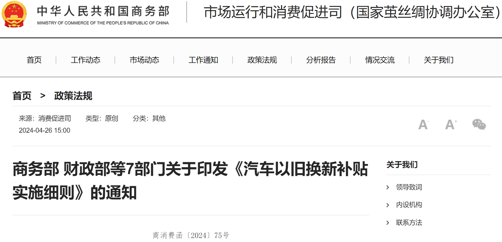 商務(wù)部財務(wù)部等7部門(mén)關(guān)于印發(fā)《汽車(chē)以舊換新補貼實(shí)施細則》的通知
