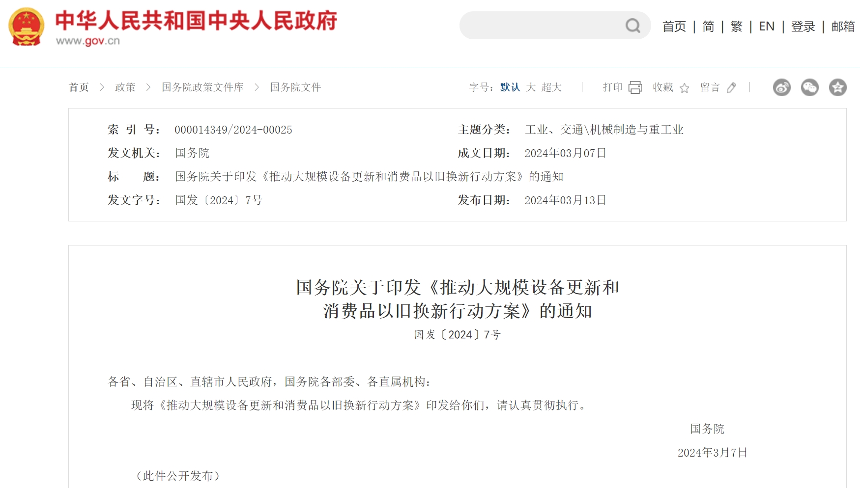 *********關(guān)于印發(fā)《推動(dòng)大規模設備更新和消費品以舊換新行動(dòng)方案》的通知