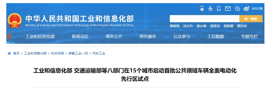 工信部等八部門(mén)在15個(gè)城市啟動(dòng)首批公共領(lǐng)域車(chē)輛全面電動(dòng)化先行區試點(diǎn)一圖讀懂(來(lái)源:裝備工業(yè)一司)