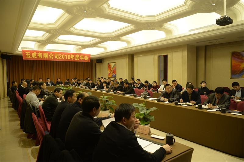 時(shí)光飛逝,歲月如梭,轉眼間忙碌的2016年已悄然逝去,充滿(mǎn)期待的2017年向我們走來(lái)。新的一年,孕育新的目標和希望。玉成有限公司2016年度年會(huì )于2017年1月16日在安徽合肥白金漢爵大酒店盛大召開(kāi),有來(lái)自集團16個(gè)經(jīng)營(yíng)單位的董事長(cháng)、總經(jīng)理及******員工和本部的全體員工共近70名員工齊聚一堂。